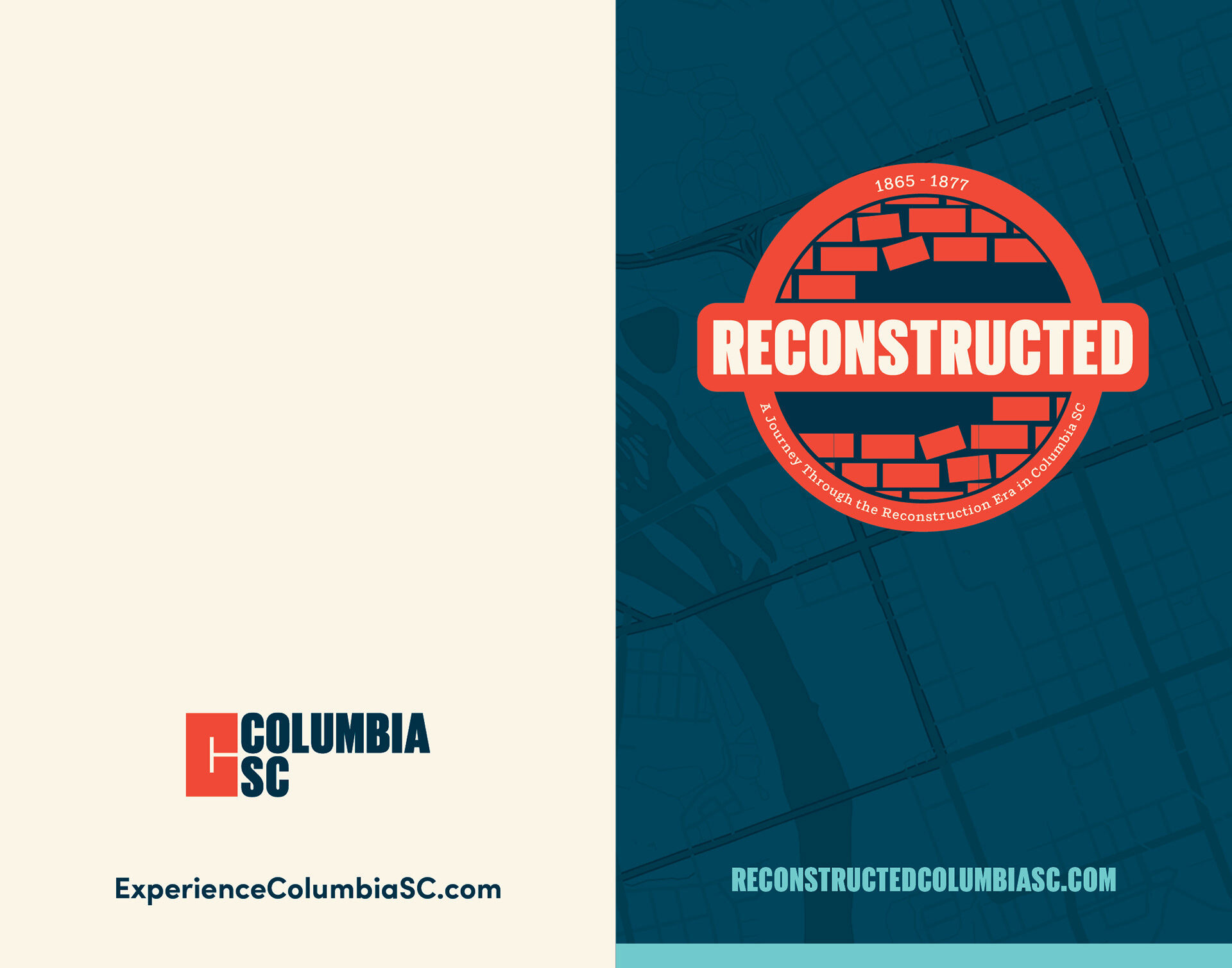 The logo for the walking trail appears on the tourism website, as well as this printed brochure. For the logo design, I incorporated the imperfect brick graphic to represent this period, where the physical city lay in ruins by the Burning of Columbia, and how society moved forward post-Civil War, as it attempted to determine the legal status of African Americans.
